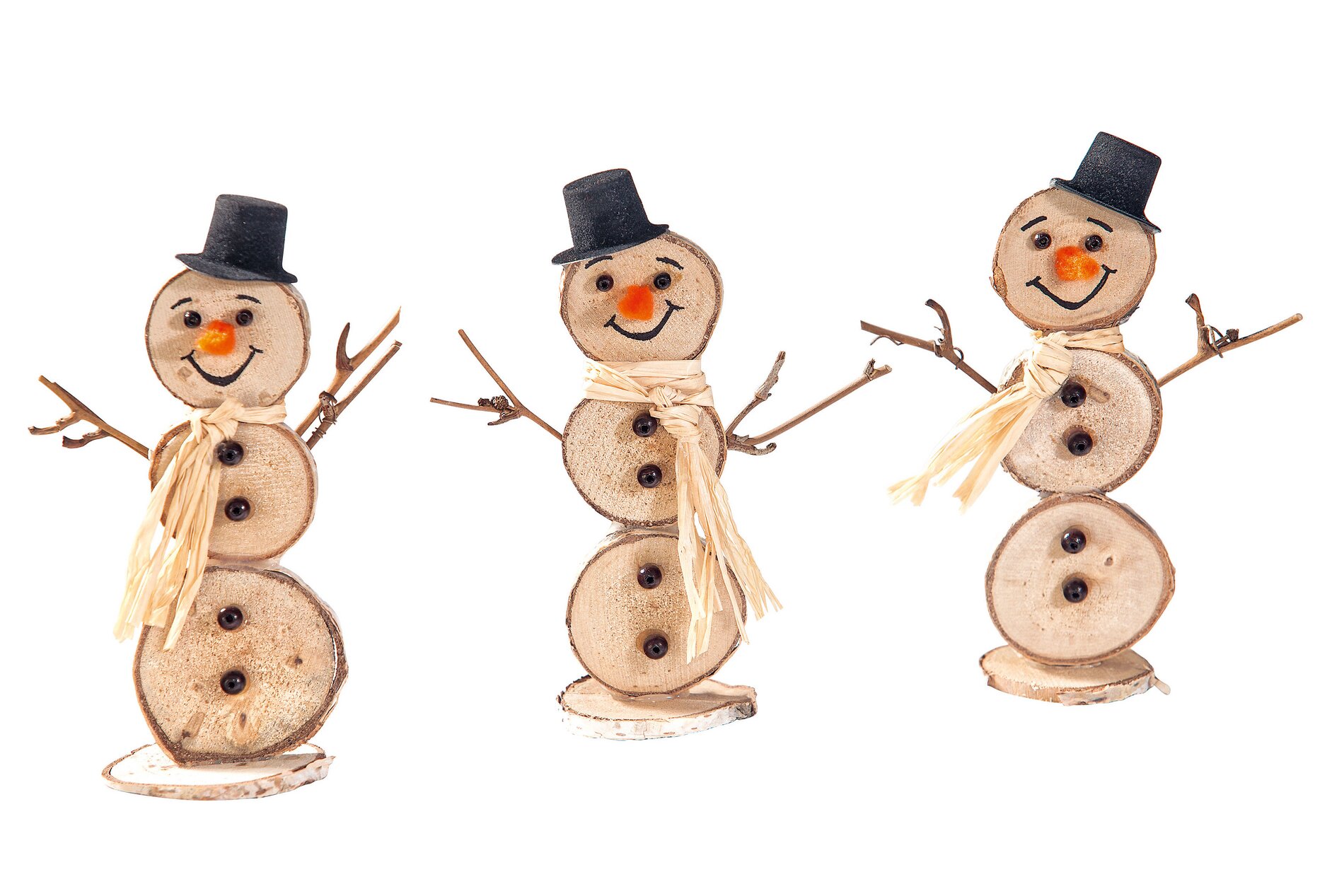 Te małe bałwanki są wykonane z plasterków koryi wykończone małymi koralikami i kapeluszem. To także świetny pomysł na prezent!