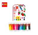 Farba do koszulek Marabu KiDS zawiera 12 butelek po 36 ml w kolorach: różowo-beżowym, żółtym, pomarańczowym, czerwonym, różowym, jasnoniebieskim, niebieskim, zielonym, brązowym, białym, czarnym.