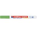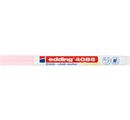 Marker kredowy edding 4085 z okrągłą końcówką ma szerokość linii ok. 1-2 mm i może być używany na ciemnych tablicach kredowych, szkle, szybach okiennych, a nawet lustrach. Płynna kreda charakteryzuje się wyjątkowo wysoką nieprzezroczystością i można ją zetrzeć wilgotną ściereczką.