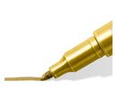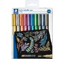 Wysokiej jakości zestaw markerów metalicznych STAEDTLER z 10 wybranymi pisakami nadaje się do pisania i dekorowania na jasnym lub ciemnym papierze i kartach. Pisaki z okrągłą fibrową końcówką mają średnicę korpusu ok. 11 mm i szerokość linii ok. 1-2 mm. Mogą być używane natychmiast, ponieważ nie wymagają wstrząsania ani pompowania. Z serii "Design Journey".