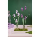 Mata z trawy o wymiarach ok. 14 x 14 cm i wysokości ok. 0,5 cm. Mata na trawę jest wykonana z tworzywa sztucznego.