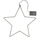 Nastrojowy metalowy pierścień VBS LED "Star" o średnicy ok. 37 cm, wyposażony w ciepłobiałe diody LED. Oczko do zawieszenia ma średnicę ok. 1 cm. Pojemnik na baterie ma przewód o długości ok. 51 cm i można go włączać i wyłączać lub wybrać funkcję timera. W tej pozycji gwiazda świeci przez 6 godzin, a następnie wyłącza się automatycznie na 18 godzin. Wymagane są 3 baterie AA (brak w zestawie).