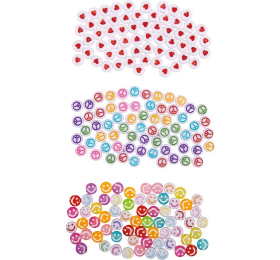 Uwolnij swoją kreatywność dzięki kolorowej Mieszanka koralików "Happy"! Te wszechstronne plastikowe koraliki o średnicy 6 mm i wadze 25 g zachęcają do tworzenia wyjątkowych bransoletek, naszyjników i wisiorków. Proszę łączyć ze sobą serduszka, znaki pokoju i emotikony, aby stworzyć indywidualną biżuterię odzwierciedlającą Państwa osobowość.