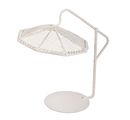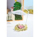 Biały mini parasol do wszechstronnych dekoracji. Mini parasol jest całkowicie biały i wykonany z metalu. Wysokość parasola wynosi około 13 cm. Jego głębokość wynosi ok. 13 cm, a średnica ok. 10 cm.