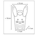 Te urocze mini torebki w kształcie zajączków wielkanocnych mają wymiary ok. 13 x 7 x 18 cm. Zestaw zawiera materiał na 5 uroczych torebek w kształcie zajączków wielkanocnych.