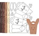 Karton fotograficzny jest wycinany laserowo i rowkowany, więcwycinanie i składanie nie jest konieczne. Mini torebki wystarczy skleić z boku, a następnie przymocować uszy i kokardki. Proszę dodać trochę wstążki i torebki z króliczkami są gotowe.
