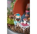 Miniaturowa grupa siedzeńwykonana jest z białego drutu. Proszę wykorzystać dwa krzesła i metalowy stolik do stworzenia własnych miniaturowych światów: