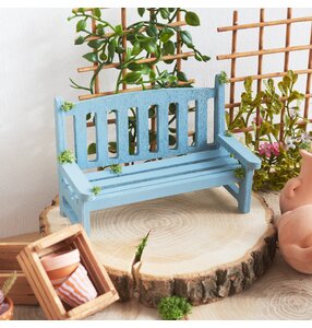 5. Malowanie miniatur i projektowanie kwiatostanu Teraz nadszedł czas, aby pomalować miniaturową ławkę "Lars" i mini doniczki z terakoty według własnych upodobań. Proszę pozwolić tym elementom całkowicie wyschnąć przed kontynuowaniem. Następnie proszę odciąć części gałęzi kwiatostanu i ułożyć je w mini doniczkach z terakoty. Przymocuj wszystko gorącym klejem, aby uzyskać stabilne mocowanie.