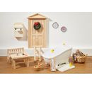 Szczegółowa miniaturowa skrzynka na listy na zawiasach o długości ok. 6,9 cm, szerokości ok. 4,6 cm i głębokości ok. 2,6 cm. Drewniana skrzynka na listy może być używana do wielu miniaturowych dekoracji.