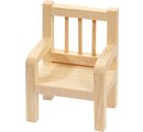 Miniaturowe krzesło o wysokości ok. 6,4 cm jest wykonane z nieobrobionego drewna. Długość wynosi ok. 4,5 cm, a szerokość ok. 3,5 cm.