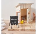 Wykonanie tego małego domku jest wysokiej jakości, a wiele drobnych szczegółów, takich jak drzwi z wyciętym sercem, sprawiają, że przyciąga on wzrok. Dzięki naturalnej powierzchni można go dowolnie spersonalizować. Można ją pomalować farbami akrylowymi, nakleić na nią papier lub ozdobić naklejkami i taśmą washi. Mogą Państwo również dodać drobne akcesoria, takie jak kwiaty lub miniaturowe figurki.