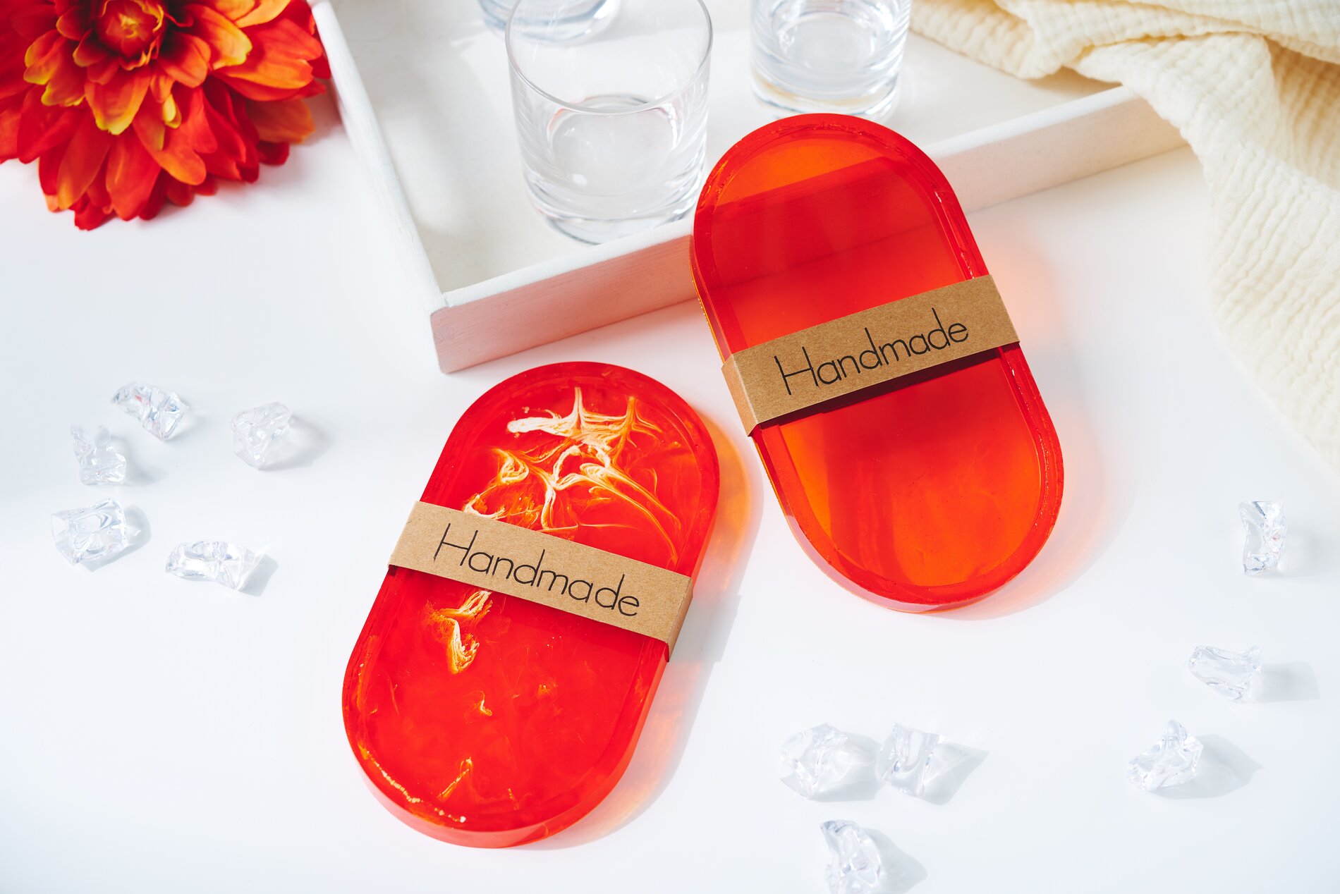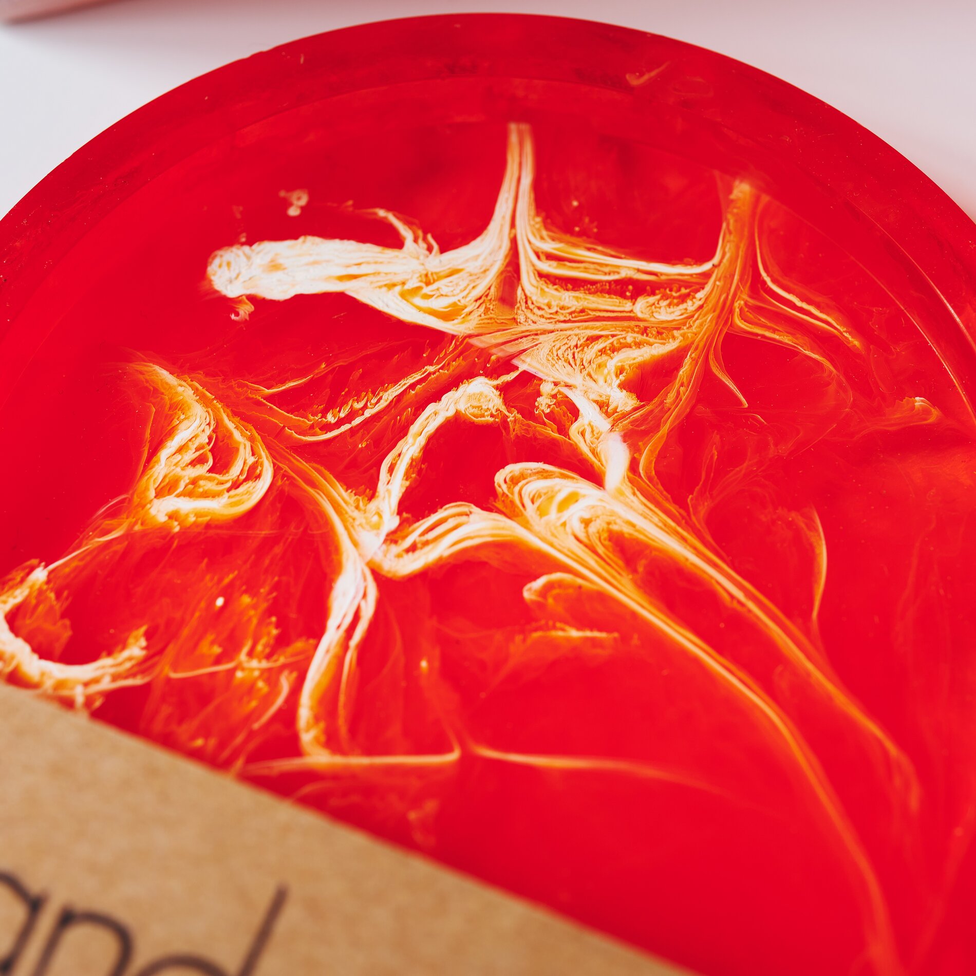Aby uzyskać wersję marmurkową, postępuj zgodnie z powyższym opisem, ale dodaj nieco więcej koloru pomarańczowego i białego do mieszanki w formie odlewniczej. Przejdź przez kolory bambusowym szpikulcem, aby utworzyć wzór. Gdy będziesz zadowolony, wysusz ponownie i pozostaw do wyschnięcia.