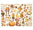 Odkryj magiczny świat Motywy do wycinania "Whispering Woods"! Te jesienne, wycinane laserowo papierowe motywy zachwycają szczegółowymi wzorami, takimi jak krasnale, wróżki, żaby, grzyby, dynie, napisy, jesienne liście, szyszki i motyle.