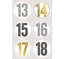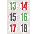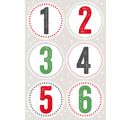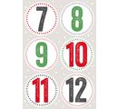 Naklejki o średnicy 5 cm to doskonały sposób na dodanie stylowego akcentu do domowych kalendarzy adwentowych . Naklejki są rozmieszczone na 4 arkuszach. Przejrzysta struktura i atrakcyjny wygląd cyfr ułatwiają dodanie świątecznego akcentu do każdych drzwi lub paczki.