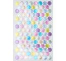 Wspaniałe naklejki "kropki" o średnicy ok. 8 mm w pastelowych kolorach z efektem metalicznym. 452 naklejki są rozmieszczone na 4 arkuszach.