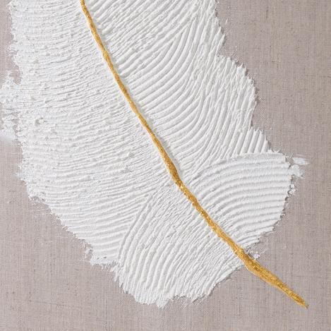 Nosze z lnianą tkaniną wyglądają bardzo elegancko już w stanie surowym. Narysuj kształt liścia ołówkiem, a następnie wymodeluj go szpachelką i białą pastą teksturową.