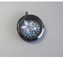Wisiorek medalion jest wyposażony w szkło po obu stronach. Wewnętrzna średnica oczka wynosi ok. 0,4 cm.