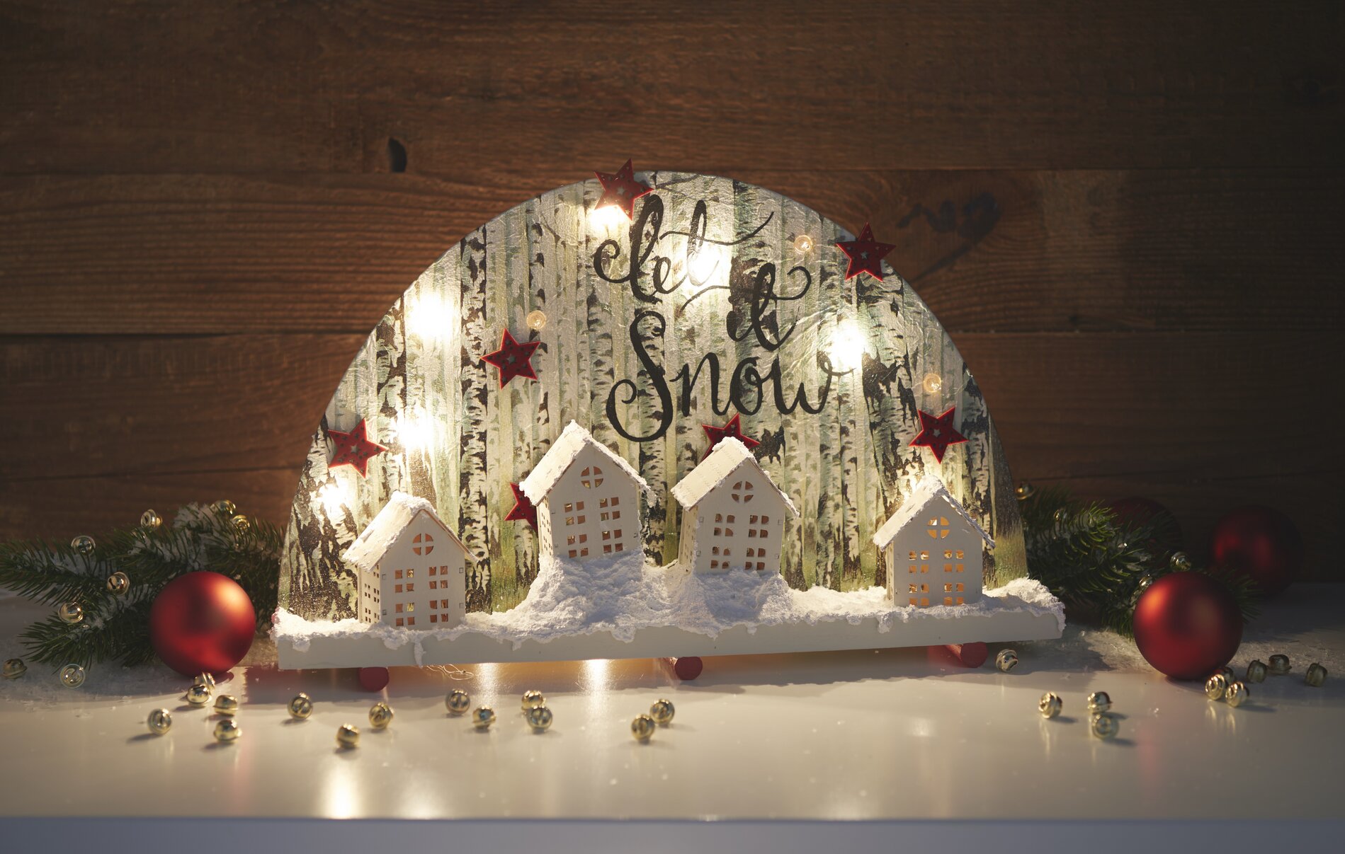 Najpierw zagruntuj łuk świetlny białą farbą rzemieślniczą, aby tylna ściana nie prześwitywała później przez serwetkę. Po wyschnięciu pokryj tylną ścianę farbą do serwetek, umieść górną zadrukowaną warstwę serwetki na wierzchu i ponownie pokryj farbą do serwetek. Po wyschnięciu tylną ścianę można również ozdobić rozrzuconymi kawałkami i atrakcyjnymi napisami. Najlepiej nadają się do tego markery.