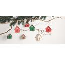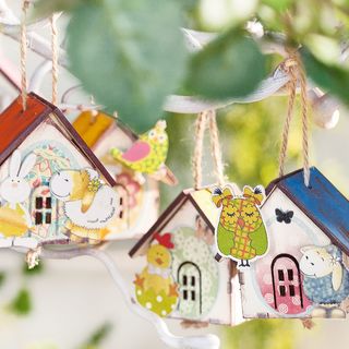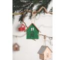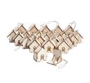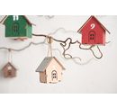Drewniane półfabrykaty są już sklejone. Dach jest wyposażony w jutową wstążkę i można go podnieść. Można je zaprojektować na wiele różnych sposobów, a następnie ozdobić wiszącą wstążką na gałęziach lub telefonach komórkowych.