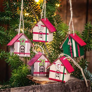 Małe domki nadają się szczególnie jako kalendarze adwentowe. Aby je wypełnić, wystarczy podnieść dach i pociągnąć za jutową wstążkę. Farby VBS Hobby Color nadają się do ich projektowania lub można je przykleić na przykład techniką serwetkową. Małe drewniane domki nadają się również jako dekoracje ogrodowe, a podświetlone lampkami LED stanowią piękną dekorację przez cały rok.