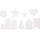 Wspaniałe zawieszki na prezenty VBS "White Mix" w świetnym opakowaniu XXL zawierającym 100 sztuk. Otrzymają Państwo 10 foremek z otworem do mocowania, każda w wielokrotności 10. Przywieszki mają rozmiar około 3,2 - 9,5 cm.