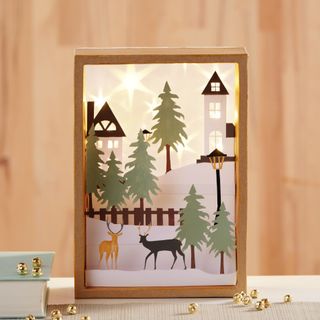 Czarująca papierowa sylwetka VBS "Zimowy krajobraz" jest zawieszona na zawiasach i ma długość ok. 69,5 cm i wysokość ok. 15,5 cm. Wysokość motywu wynosi ok. 2,3-13,5 cm. Materiał to biały karton fotograficzny. Papierowa sylwetka składa się z trzech składanych części.