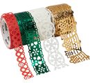 Wspaniałe papierowe ramki "Xmas ", które zachęcają do kreatywności. 4 papierowe ramki są samoprzylepne i mają różne wzory, takie jak bombki, płatki śniegu, dzwonki i motywy świąteczne. Szerokość wynosi około 0,8 cm. 1,5 cm, 1,7 cm i 2,3 cm przy długości ok. 1 m każdy.