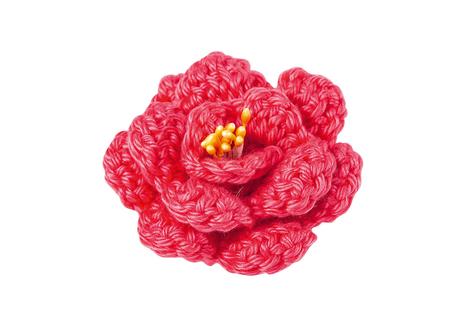 Szydełkować kwiaty z dwóch czerwonych włóczek, nabrać 26 oczek łańcuszka (łańcuszki).