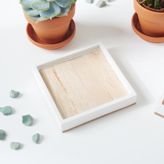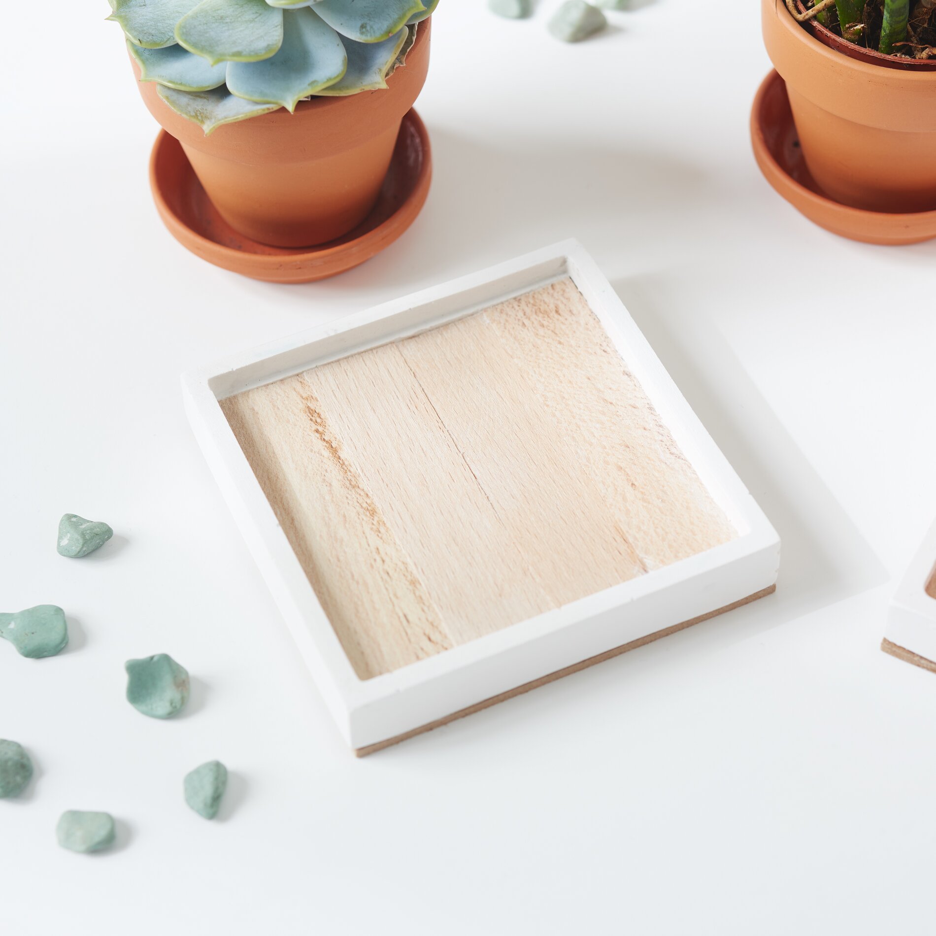 Następnie sklej ze sobą 4 bloki rzemieślnicze VBS na długim, wąskim boku. Po wyschnięciu kleju przytnij klocki do długości 9 cm za pomocą piły. W ten sposób otrzymasz kwadrat o wymiarach 9 x 9 cm.