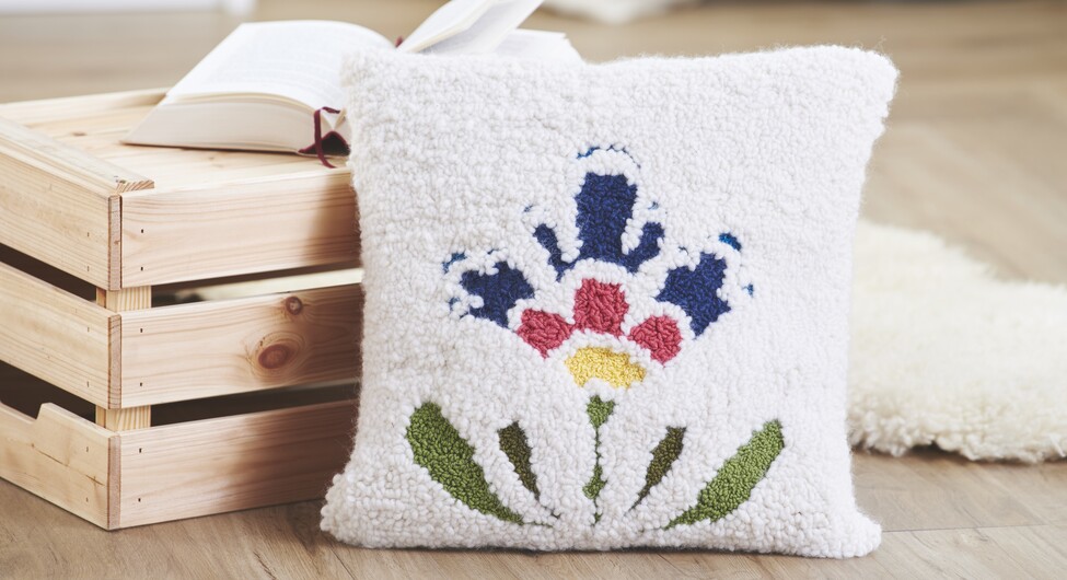 Haft dekoracyjny o wyglądzie 3D jest wykonywany poprzez tworzenie pętli o różnych długościach, które są generowane przez igłę dziurkacza. Długość pętli można regulować na samej igle. Aby to zrobić, nawlecz wełnę na igłę dziurkacza zgodnie z instrukcją. Upewnij się, że rozmiar igły i wełny pasują do siebie. Możesz teraz wyszyć swój motyw. Igła musi być zawsze całkowicie wsunięta, a otwór igły musi być skierowany w kierunku pracy. Pracuj blisko materiału i powoli.