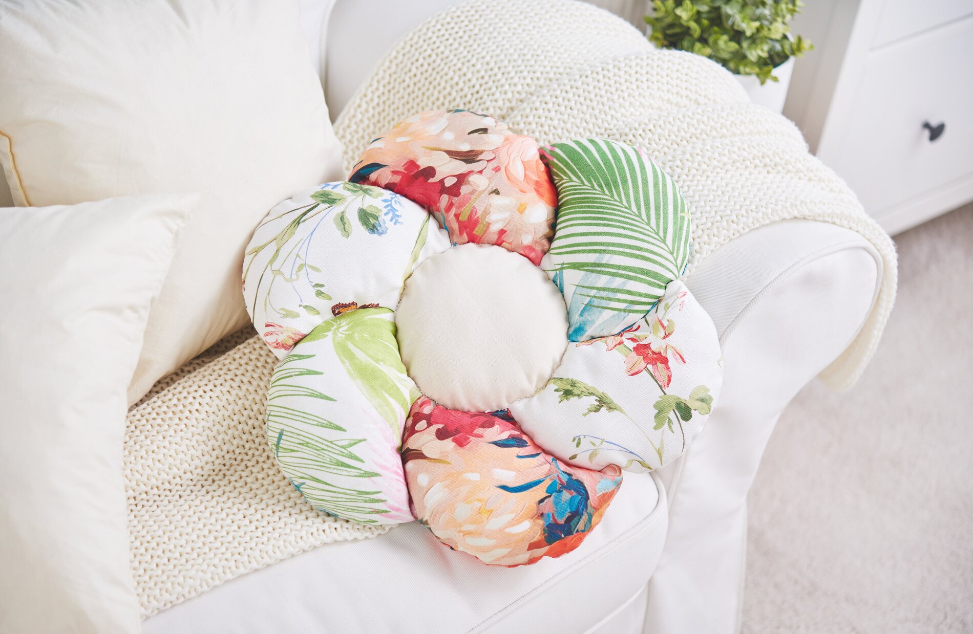Skorzystaj z listy materiałów w tym pomyśle na zakupy lub wybierz swoje ulubione tkaniny w naszym sklepie internetowym. Nasza szeroka gama tkanin i włóczek pomoże Ci stworzyć idealny projekt poduszki w kwiaty!