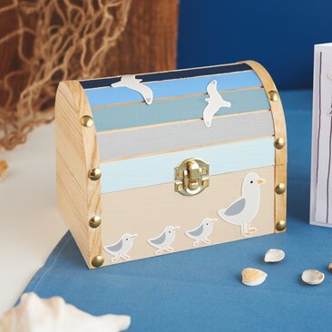 Gdy tylko farba całkowicie wyschnie, proszę kontynuować projektowanie skrzyni za pomocą papierowych kształtów: papierowe kształty to prefabrykowane, wykrawane lub wycinane motywy wykonane z papieru.