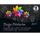 Designerska karta fotograficzna "Basic" zawiera 60 arkuszy kart fotograficznych w różnych kolorach i wzorach. kolorach i wzorach. Karton fotograficzny jest zadrukowany dwustronnie, każdy o grubości 300 g/m² i w formacie DIN A6.