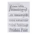 Znaczki są wykonane z fotopolimeru i są dostarczane na arkuszu podkładowym DIN A7. Fotopolimer jest bardziej odporny na rozdarcia niż silikon. Dzięki stemplom mogą Państwo osiągnąć wspaniałe rezultaty. Życzenia świąteczne idealnie nadają się do projektowania kartek na Boże Narodzenie.