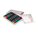 Ta wysokiej jakości metalowa puszka zawiera 6 pisaków pędzelkowych w świeżych kwiatowych kolorach, 5 pięknych papierowych kart do rozpoczęcia pisania oraz 2 arkusze naklejek transferowych. Końcówki pisaków pędzelkowych są miękkie i gwarantują sukces. Za pomocą końcówki cienkopisu można wyczarować wspaniałe detale, a za pomocą naklejek transferowych można dodać wykończenie do kartki.