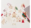 Pudełko hobbystyczne zawiera na przykład drewniane półkule bez otworów, które idealnie nadają się do tworzenia figurek, lalek lub dekoracji. Rozrzucone elementy z motywami zimowymi VBS "Rune" umożliwiają tworzenie zimowych scen lub dodawanie specjalnych akcentów do projektów rzemieślniczych.