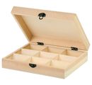 Ta wykonana z surowego drewna skrzynka na herbat ę z pokrywą na zawiasach i 9 przegródkami oferuje wystarczająco dużo miejsca do przechowywania torebek z herbatą. Wymiary wewnętrzne przegródek wynoszą ok. 7 x 6 cm. Proszę udekorować tę drewnianą skrzynkę w dowolny sposób. Mogą Państwo zainspirować się naszymi motywami ze słomianego jedwabiu i nadać swojej skrzynce na herbatę spersonalizowany charakter. Mogą Państwo również przekształcić tę małą drewnianą skrzynkę w modny przedmiot o wyglądzie shabby chic, nakładając na nią kolory techniką rozmazywania.