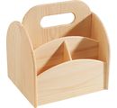 Praktyczny i wszechstronny pomocnik. Solidny i pięknie wykończony. Z zaokrąglonymi krawędziami i uchwytem do przenoszenia. Dzięki obrotowej tarczy na spodzie, wszystkie przybory są łatwo dostępne, a solidne drewno oferuje Państwu szeroki wachlarz możliwości organizacji organizera.