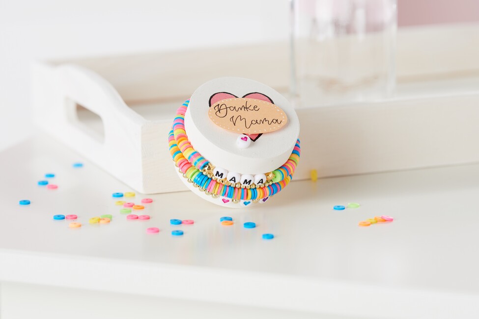 Pierwszym krokiem jest nawleczenie koralików na różne bransoletki. Możesz tutaj wybrać własną kreatywną kombinację kolorów.