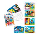 Wspaniały zestaw Sabbiarelli Sand-it for Fun Album What we will do? z 10 wstępnie przyklejonymi motywami do kolorowania piaskiem (brak w zestawie). Motywy mają wymiary ok. 15 x 20 cm.