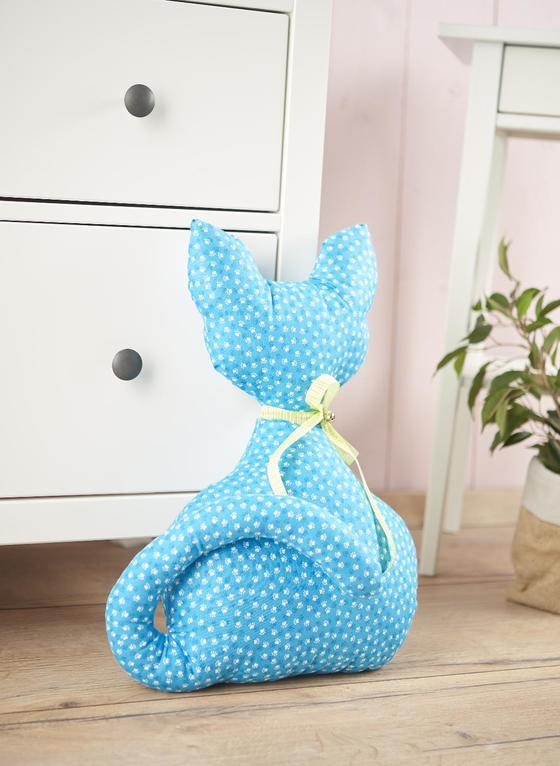 Zszyj ze sobą dwa kawałki materiału, z wyjątkiem małego otworu na dole ogona kota , a następnie odwróć je prawą stroną na zewnątrz. Używając narzędzia do wypychania lub zwykłej drewnianej łyżki, z pewnością uda ci się wypchać poduszkę kota watoliną tak, aby była twarda w dotyku. Na koniec wystarczy zaszyć mały otwór i zawiązać ozdobną kokardę wokół szyi. Mały przyszyty dzwoneczek dodaje poduszce dla kota tego czegoś.