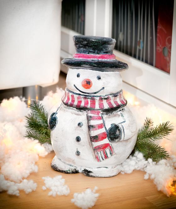 Aby uzyskać odrapany wygląd, lekko przetrzyj bałwana czerwono-brązową farbą i podkreśl czarną farbą.