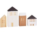 Dzięki wysokości 11 cm i długości 18,5 cm, ta seria drewnianych domków przyciąga wzrok w każdym pomieszczeniu. Różne rozmiary domków pozwalają na stworzenie atrakcyjnej i dynamicznej dekoracji, która pięknie wkomponuje się w każde otoczenie.