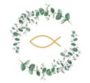Serwetka "Gałązka komunijna" nadaje się na komunie, bierzmowania, chrzciny i bierzmowania. Elegancki motyw ćwiartki na białym tle przedstawia złotą rybkę w centrum otoczoną delikatnym wiankiem z eukaliptusa. Nadaje się jako dekoracja stołu na ten wyjątkowy dzień lub kreatywny prezent.