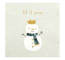 Serwetka "Snowman King" przedstawia uroczego bałwanka z koroną i szalikiem oraz napisem "Let it snow" nad nim. Doskonale nadaje się do techniki serwetkowej. Umożliwia ona przeniesienie motywu na różne powierzchnie, takie jak drewno, karton, tektura czy tkanina, przy użyciu farby do serwetek .