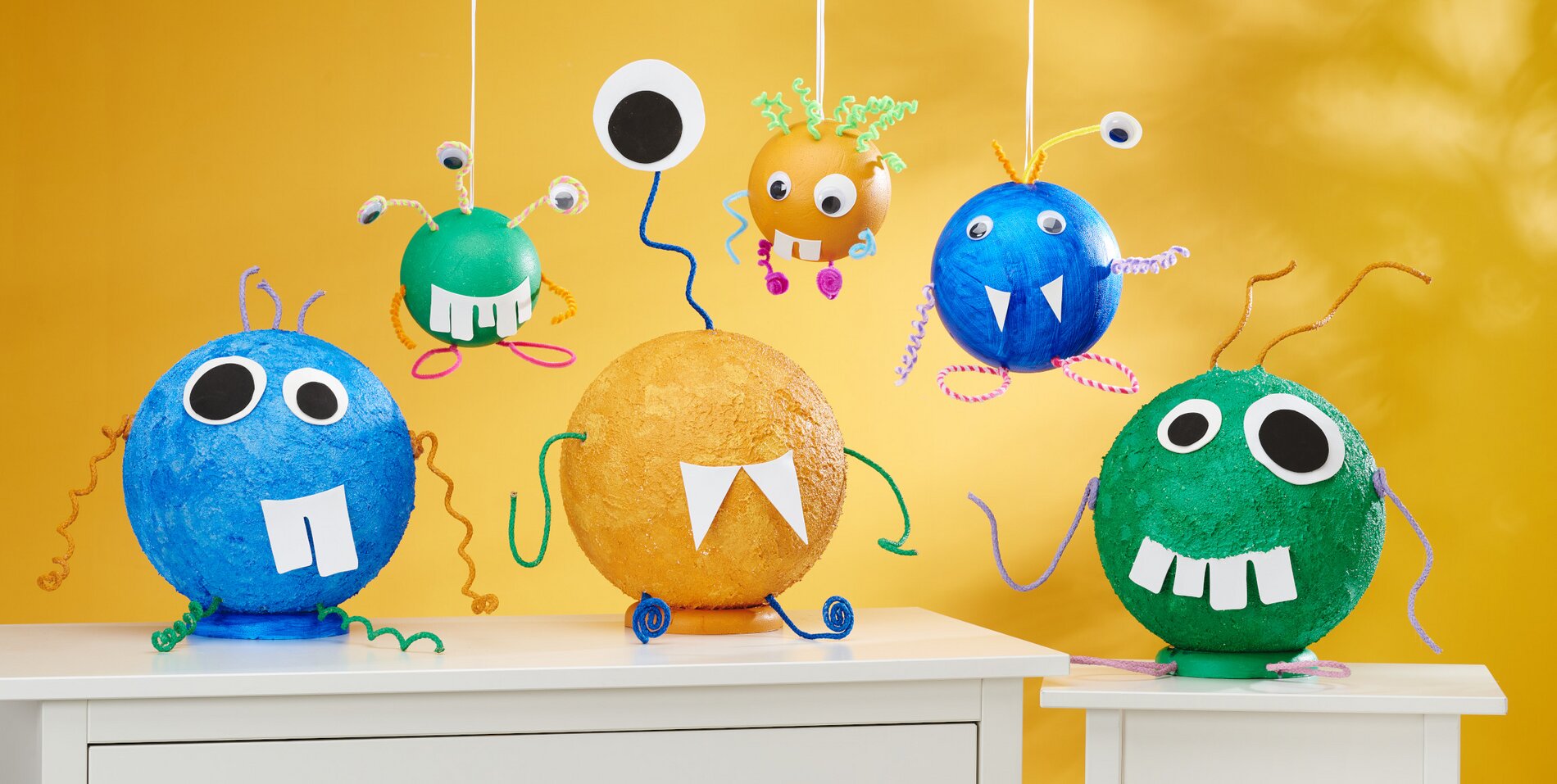 5. Wskazówka: W przypadku mniejszych potworów można również użyć ruchomych oczu o średnicy 30 mm i drutu szenilowego zamiast drutu figurowego.