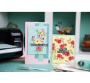 Proszę używać wyciętych kwiatów do ozdabiania szerokiej gamy rękodzieła, takiego jak scrapbooki, przywieszki do prezentów, kartki okolicznościowe i wiele innych. Idealny do nadania prostemu pudełku lub torbie z papieru pakowego pięknego wyglądu, który można przekształcić w eleganckie opakowanie na prezent z odrobiną ozdobnej wstążki. Szablon można łączyć z innymi szablonami do wykrawania lub wytłaczania. Otwiera to nowe możliwości projektowania Państwa kreatywnych prac.