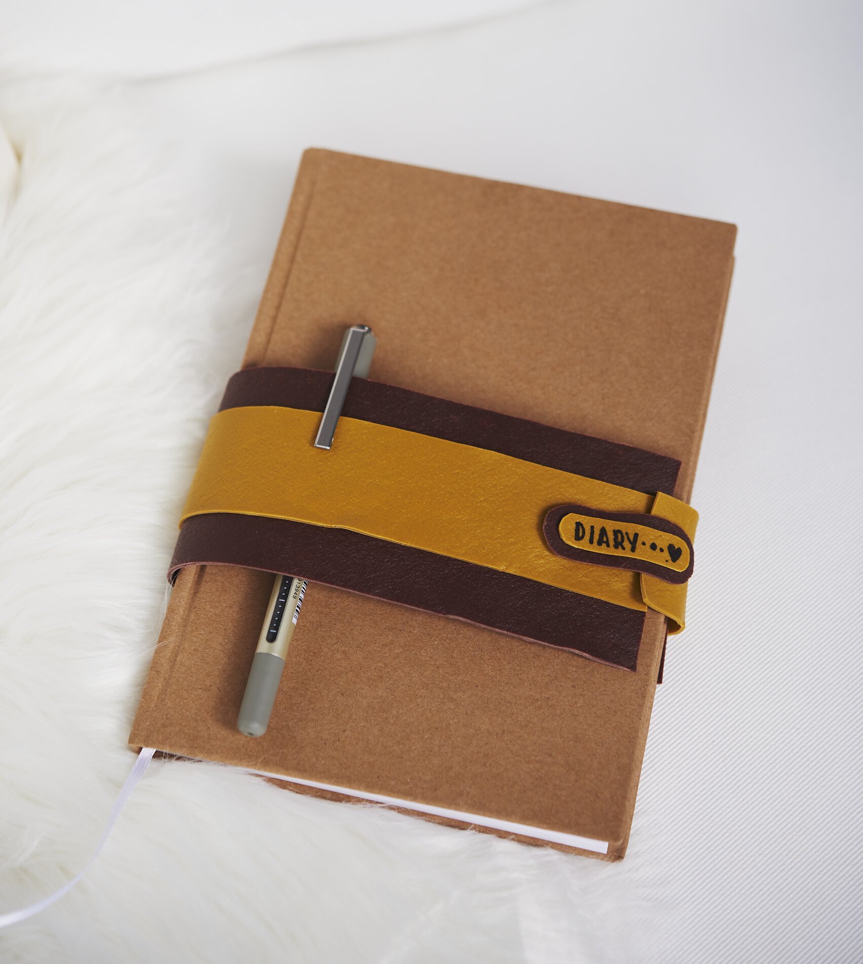 Gdy wszystko ostygnie, wymodelowana okładka nabierze wyglądu przypominającego skórę. Teraz możesz udekorować okładkę książki kolorami, posypkami lub brokatem. Na koniec użyj kleju rzemieślniczego do przymocowania dwóch magnesów, aby ją zamknąć, a Twoja indywidualna i spersonalizowana skórzana okładka jest gotowa.