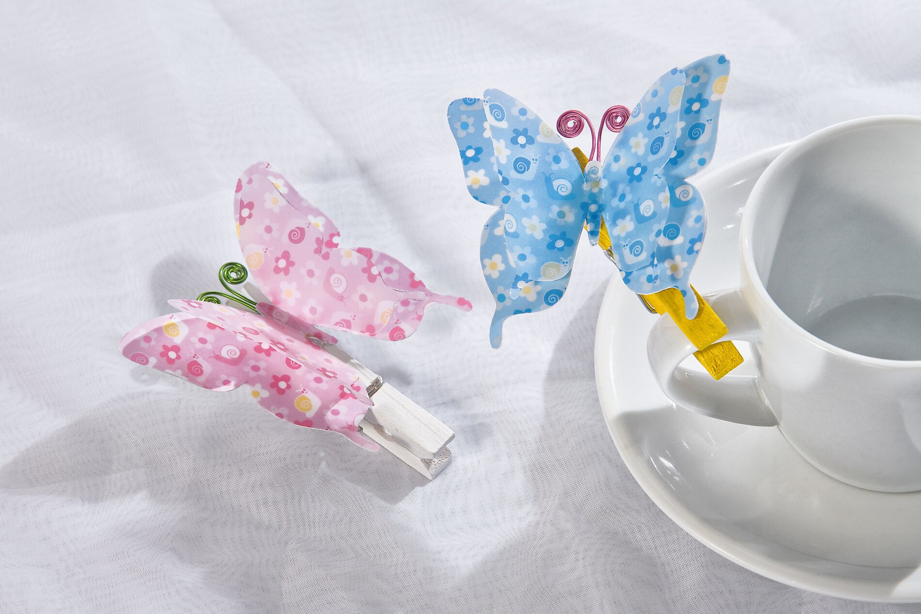 Te urocze motylki to ładna mała dekoracja, którą można wykonać bardzo szybko. Można ich użyć do udekorowania wielkanocnego krzewu, dodania odrobiny koloru do stolika kawowego, a nawet przymocować je do lekkiej, pachnącej zasłony dzięki praktycznemu drewnianemu klipsowi .