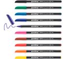 Zestaw 10 kolorowych pisaków edding zawiera kolory czarny, czerwony, niebieski, zielony, żółty, jasnoniebieski, brązowy, fioletowy, pomarańczowy i różowy. Pisaki z fibrową końcówką mają szerokość linii 1 mm. Tusz jest na bazie wody, nie prześwituje przez papier i jest łatwy do nałożenia na karton lub papier.